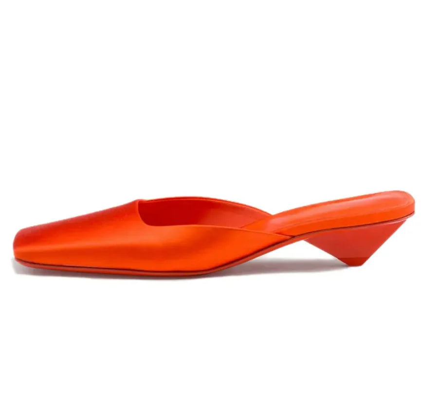 Silk Satin Square Toe Mule Sandals