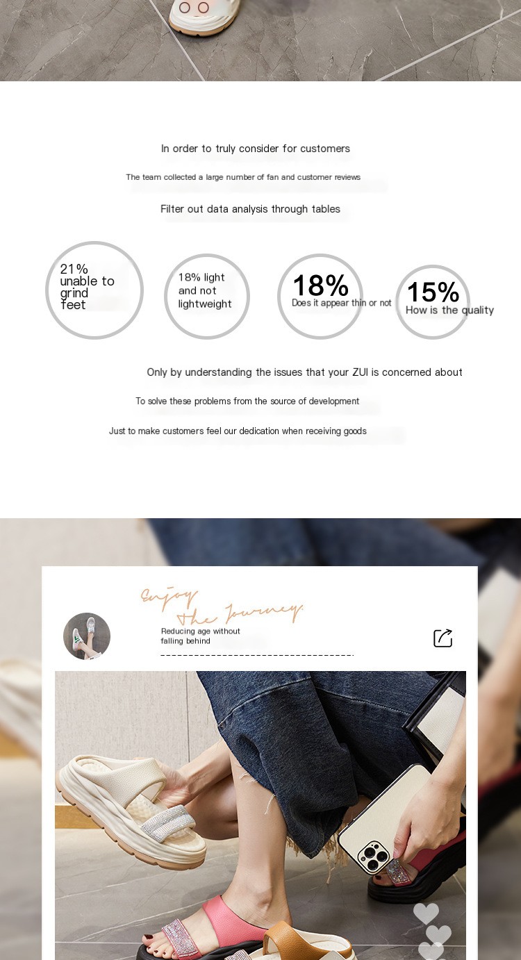 Featuring a luxurious thick sole, these sandals not only offer a fashionable lift but also provide exceptional support for all-day wear. Whether you're heading to the beach, running errands, or enjoying a night out, these versatile slippers can effortlessly complement any outfit.